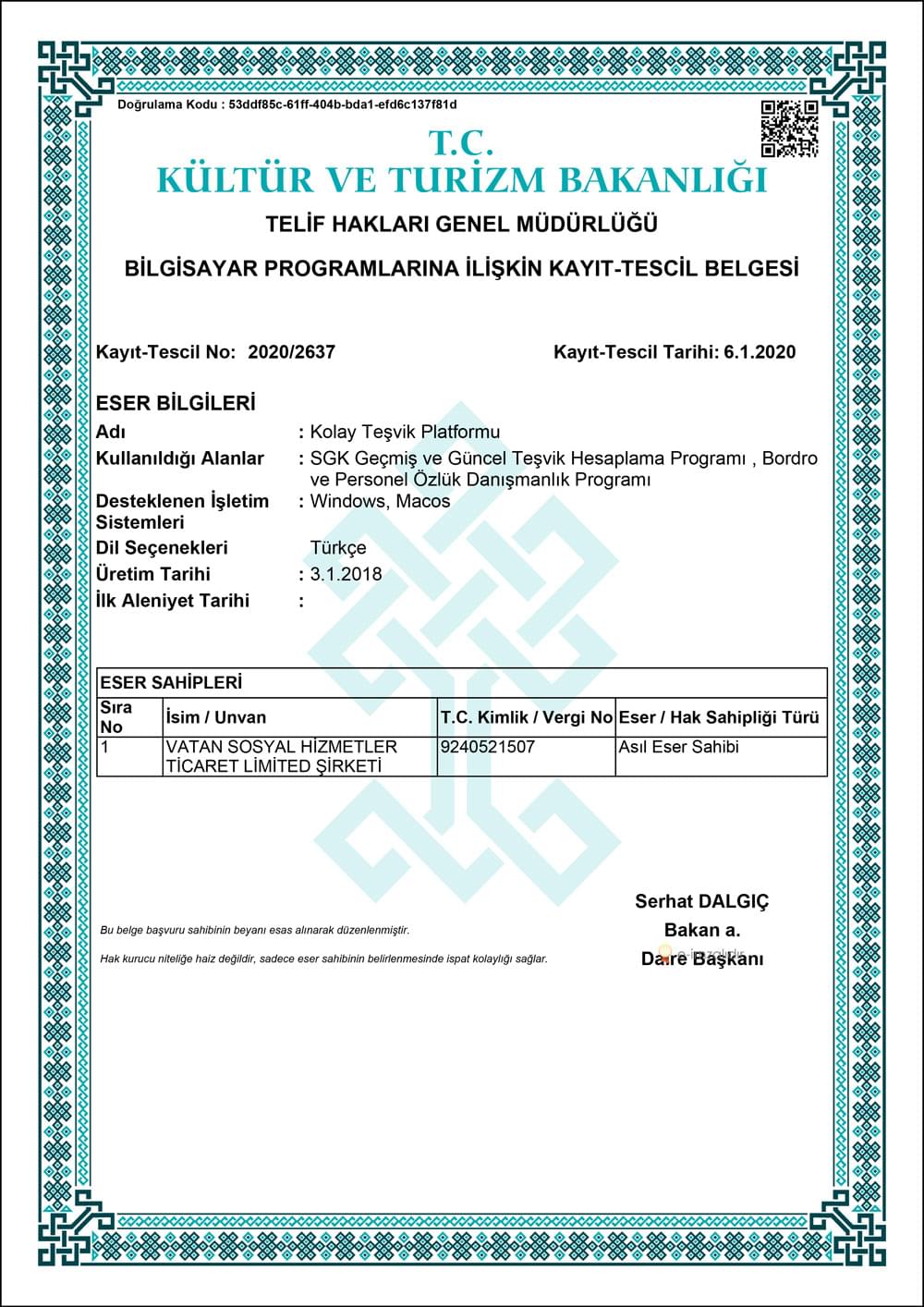 Tüm bu işlemleri Türkiye’ de ilk ve tek T.C. Kültür ve Turizm Bakanlığı Telif Hakları Genel Müdürlüğü tarafından tescil edilmiş 2018 yılında ürettiğimiz ve sürekli güncellediğimiz tamamen tarafımıza ait olan yazılımımız ile gerçekleştiriyoruz.