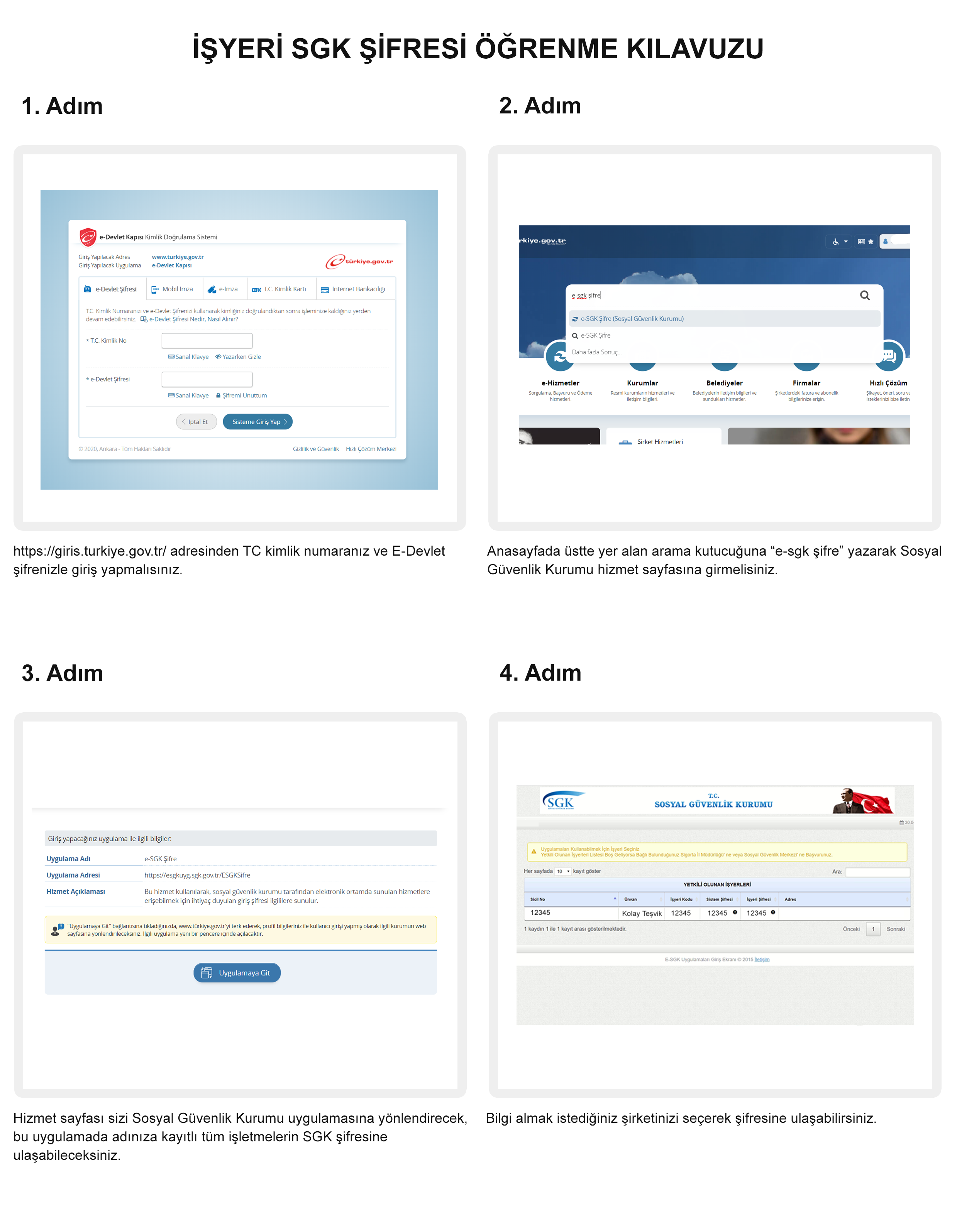 Yararlanabileceğiniz SGK teşviklerini sorgulayabilmeniz için iş yeri şifrenizi bilmeniz gerekiyor. Ancak iş yeri şifresini öğrenmek karmaşıklaşan ve zenginleşen hizmetler bütünü içerisinde zorlaşabiliyor. Değerli işverenlerimizin bu şifreyi hızlıca öğrenebilmesi için bir kılavuz hazırladık. Bu kılavuzu takip ederek zaman kaybetmeden SGK İşyeri şifrenizi öğrenebilirsiniz.